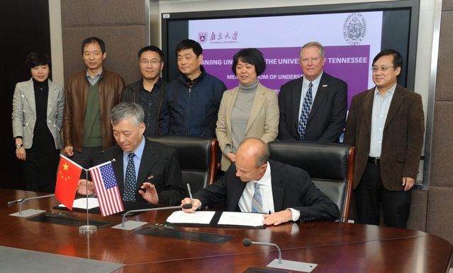 Nanjing University will continue its cooperation with University of Tennessee’s Institute of Agriculture in research on green economy and green environment, according to the memorandum signed on November 6 by the two schools from China and the United States.