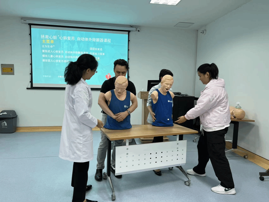 From April 18 to 21, 2023, the Hopkins-Nanjing Center (HNC) and the Medical School of NJU collaborated to organize a comprehensive four-day first aid training program. The program was divided into two sessions: theoretical study and practical training. Participants were instructed on essential skills including cardiopulmonary resuscitation (CPR), automated external defibrillator (AED) usage, and Heimlich maneuver techniques. The primary objective of the training was to equip participants with the knowledge and skills necessary to effectively respond to emergency situations.