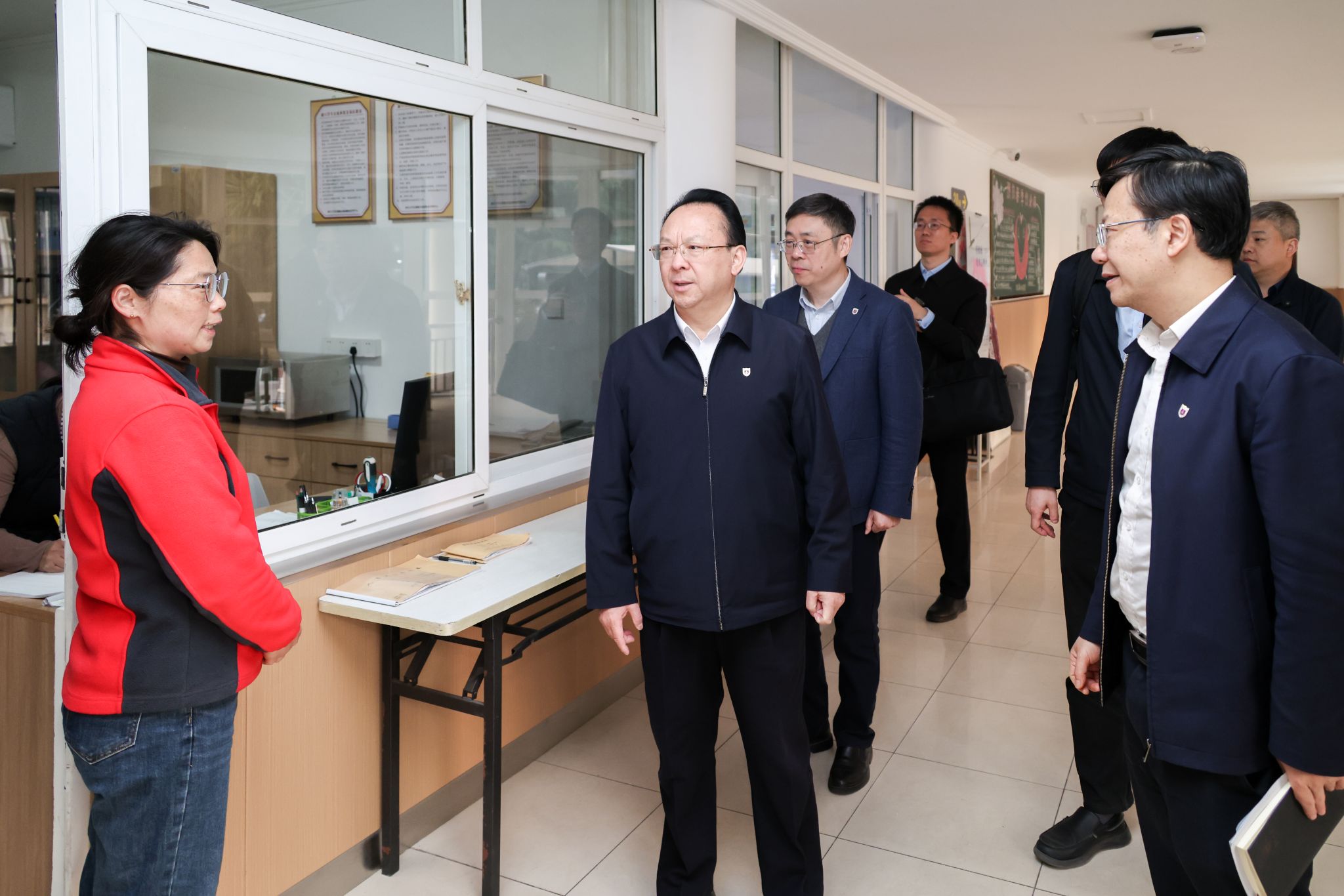 After the lecture, Tan Tieniu visited various places on Pukou Campus, including the Yuhui Building, the Zuo Dijian Sports Hall,the dormitories 17-21 and the No. 15 Student Canteen. During his visits, Tan Tieniu emphasized that responsible persons from relevant departments should truly understand students' thoughts and concerns and promptly solve urgent issues like commuting difficulties by optimizing bus routes and accelerating subway line construction, creating a comfortable, secure, and joyful campus environment at Pukou Campus, enhancing students' sense of belonging and happiness.
