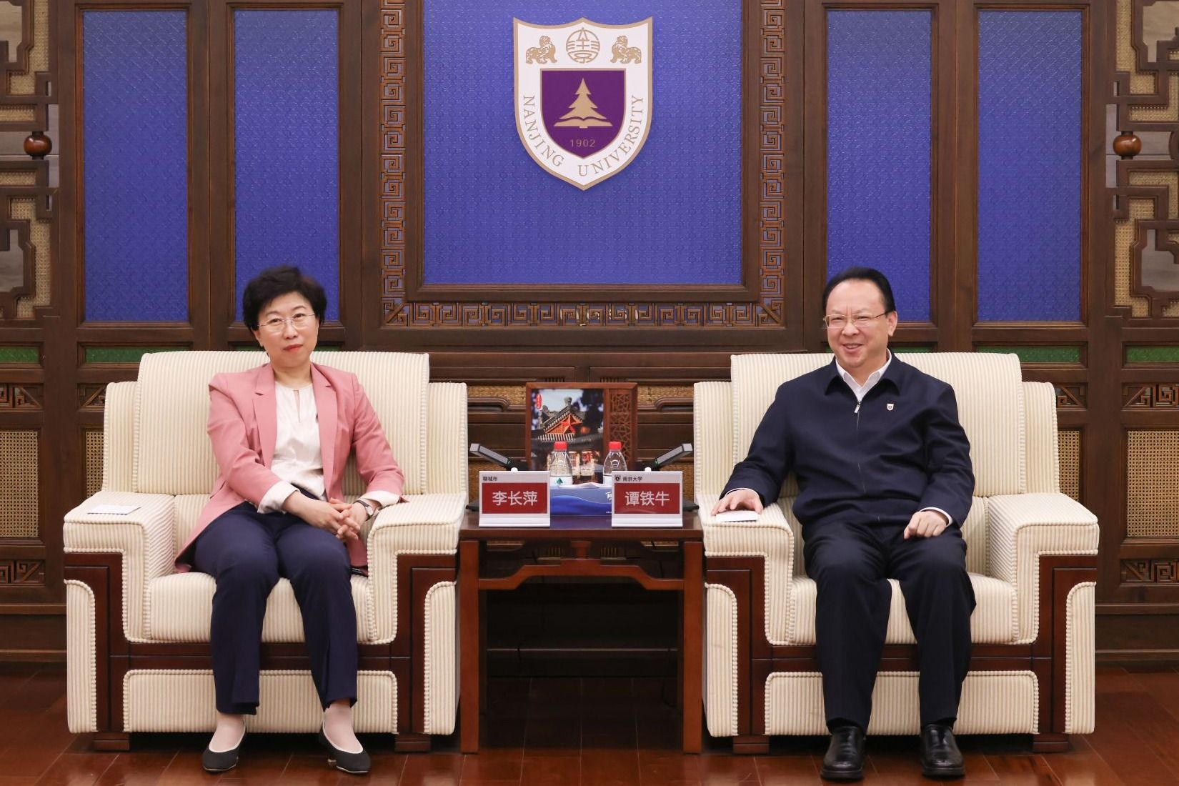 On April 15, 2025, Li Changping, Secretary of the Liaocheng Municipal Party Committee, led a delegation to Nanjing University. Tan Tieniu, Chair of NJU CPC Council and academician of the Chinese Academy of Sciences, met with Li Changping and her delegation on Xianlin Campus. Both parties engaged in discussions focused on further deepening cooperation between the university and the Liaocheng local government.