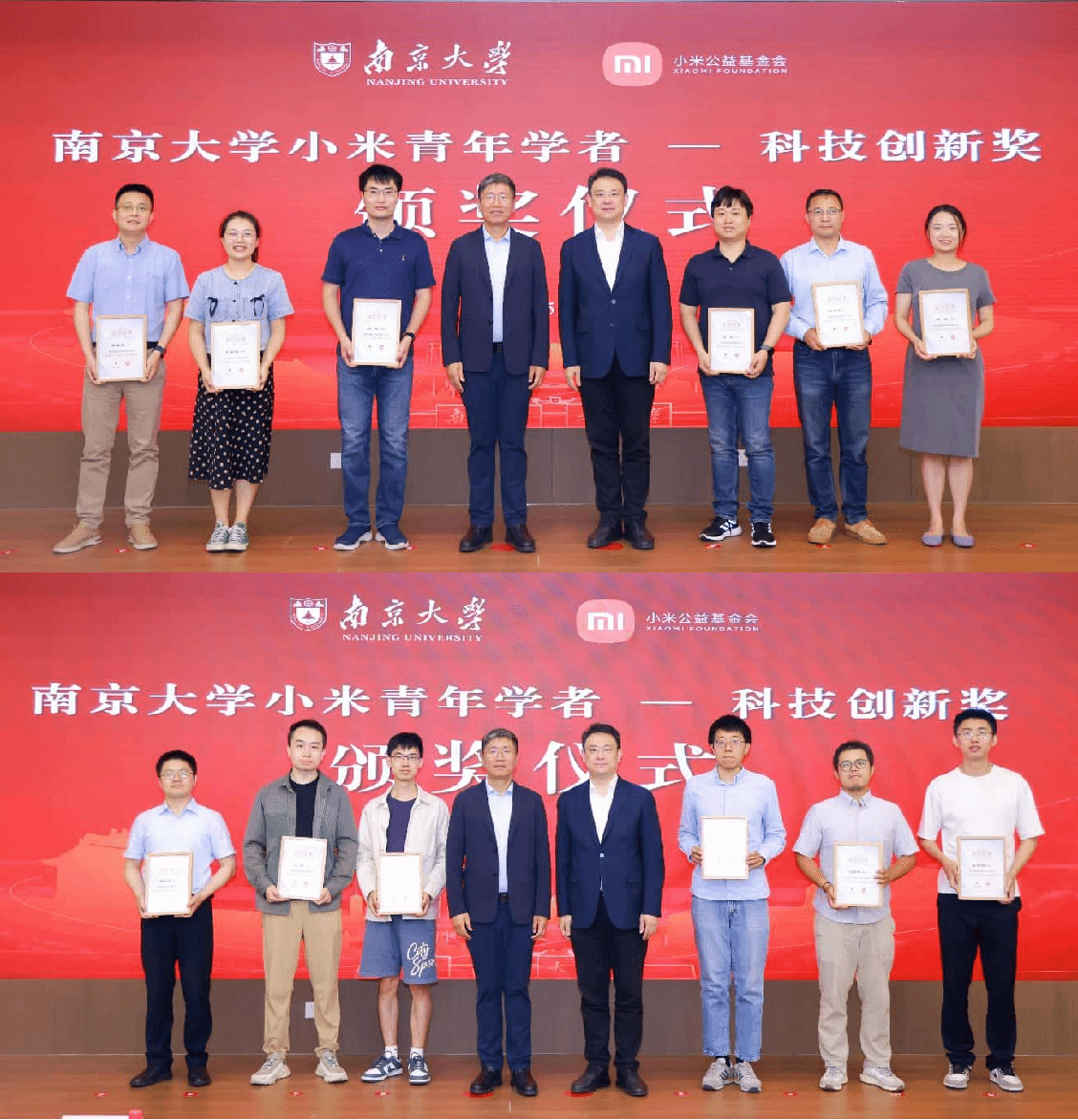 On May 14th, the award ceremony for the "Xiaomi Young Scholars - Technology Innovation Award" and "Xiaomi Scholarship" was held at the Alumni House of Nanjing University on Xianlin campus. Attendees included Liu De, Co-founder and Senior Vice President of Xiaomi Group, and Chairman of the Xiaomi Foundation; Diao Meiling, Executive Secretary of the Xiaomi Foundation; and Suo Wenbin, Member of the Standing Committee of the Party Committee and Vice President of Nanjing University.