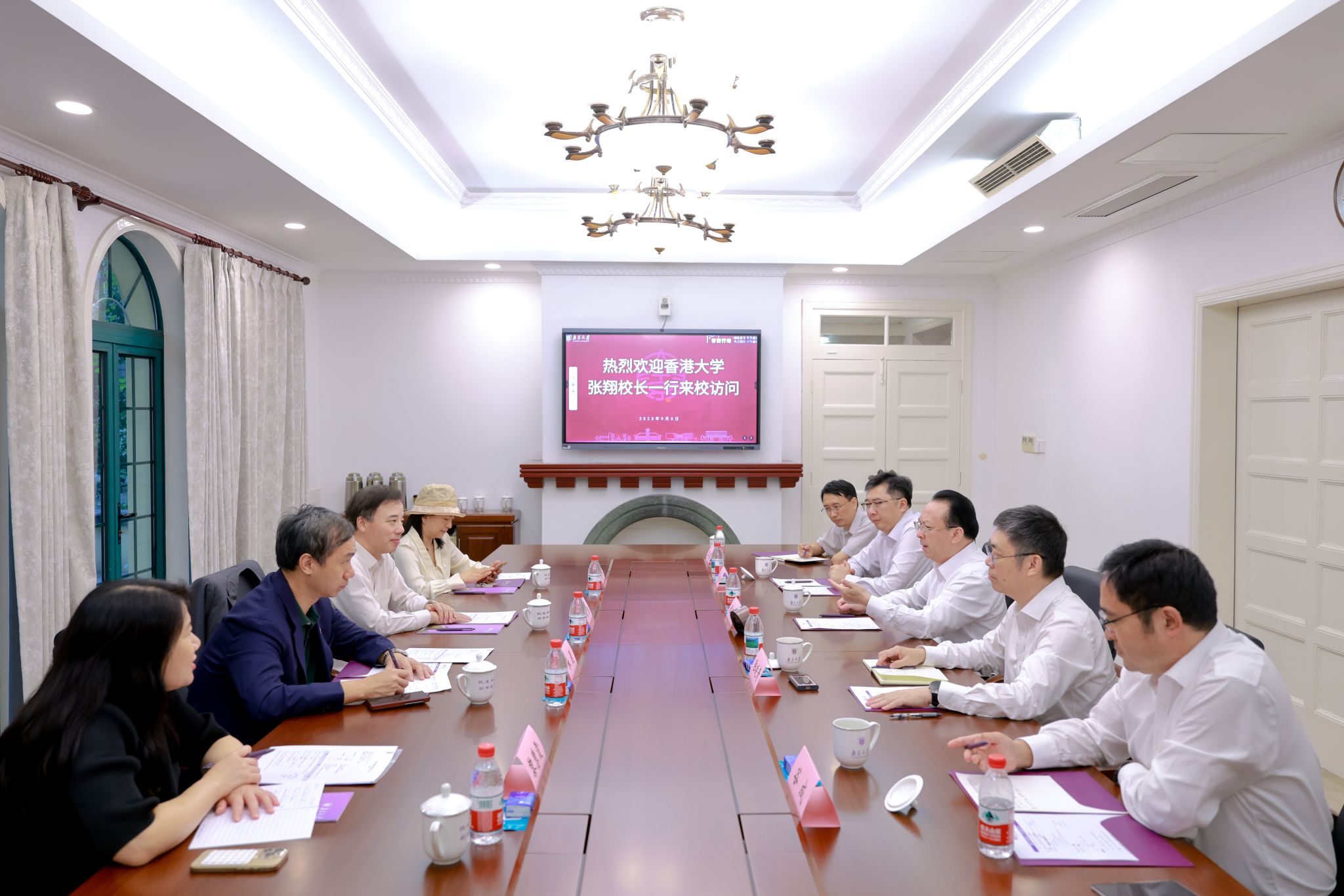 Lin Chen, Vice President of HKU; Li Huixia, Director of Academic Liaison and Mainland Affairs Office of HKU; Lu Yanqing, Vice President of NJU and heads of relevant departments participated in the meeting.