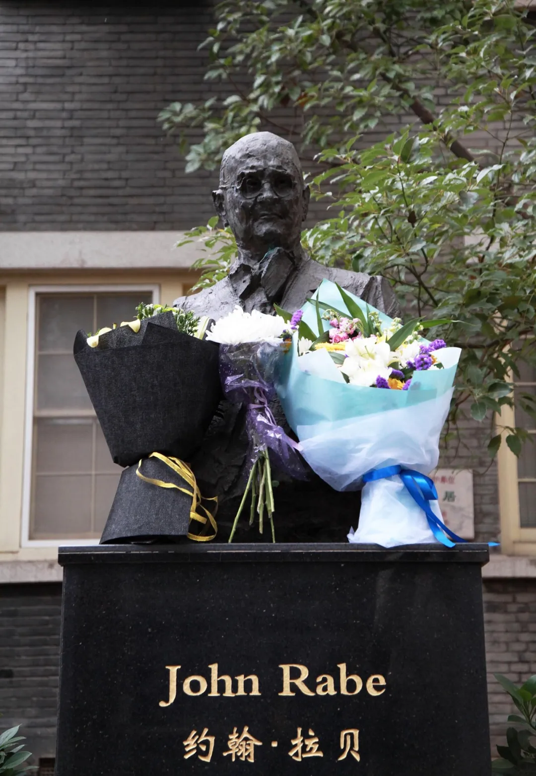 △位于凯发k8官网市区的拉贝故居内的拉贝铜像