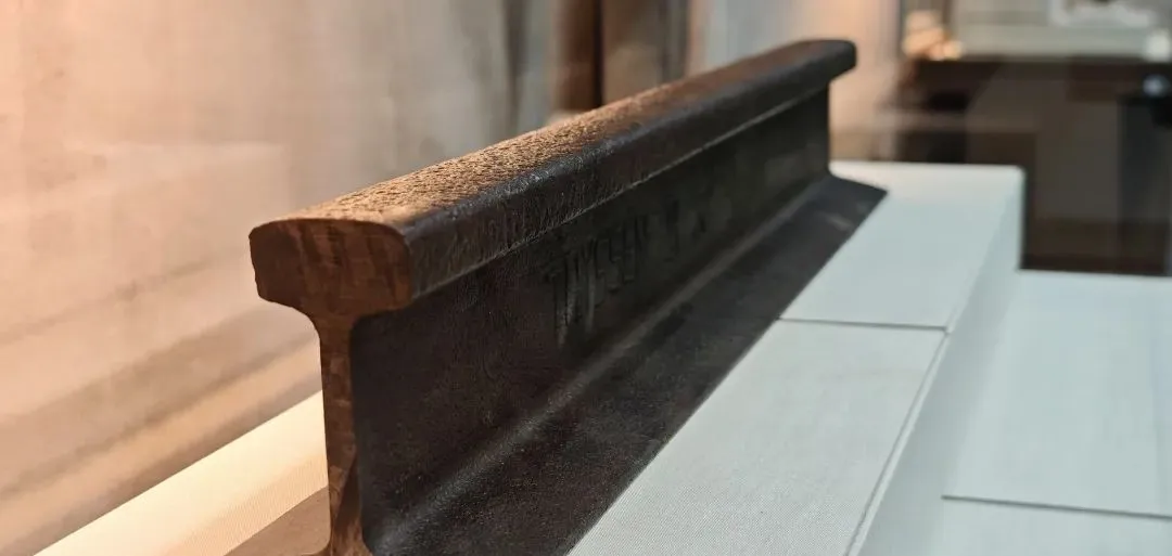 馆内展出的一截正太铁路铁轨,历经战火,细看可以看到当年的弹痕与氧化的痕迹,它见证了那段战争岁月。