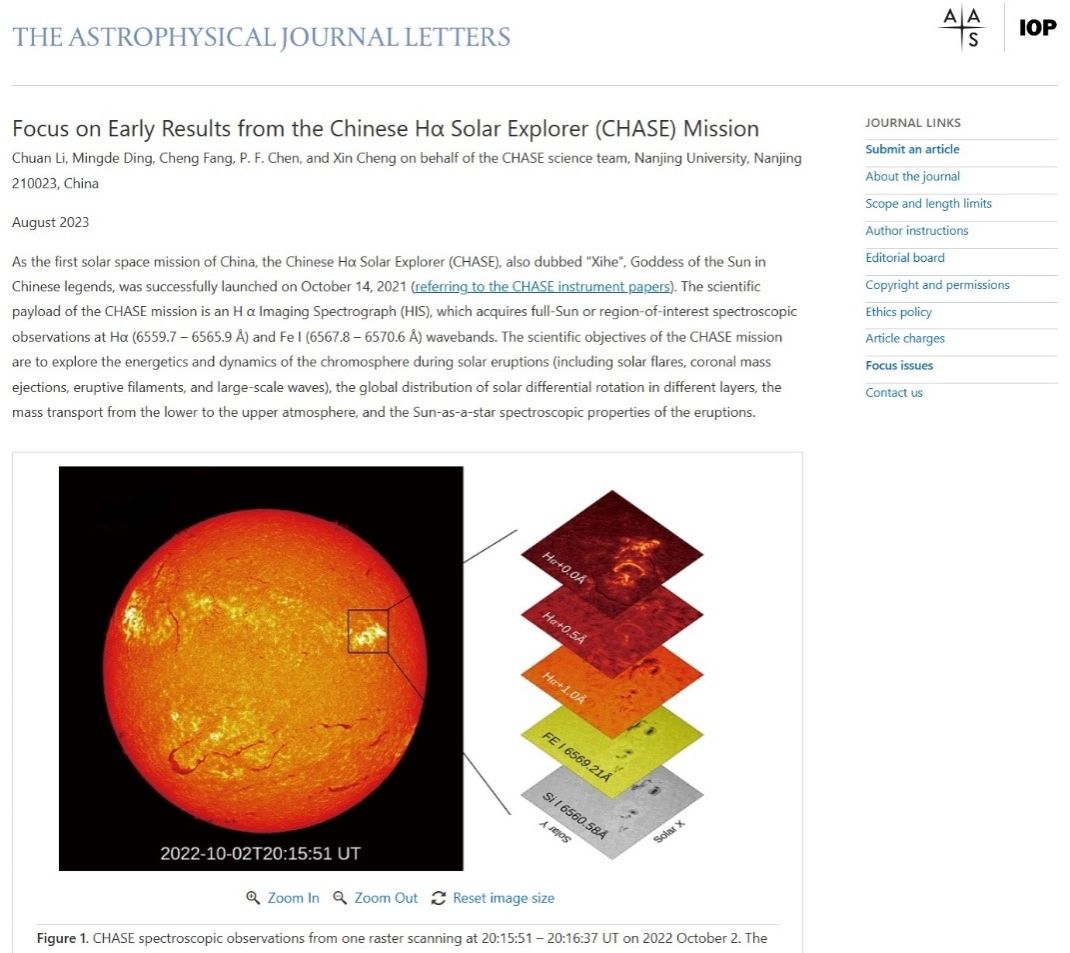 2021年10月14日,“羲和号”卫星发射成功,拉开了我国空间探日的序幕。经过一系列在轨调试,自2022年8月4日起,“羲和号”对日观测达到最佳状态,科学数据通过凯发k8官网太阳科学数据中心(SSDC-NJU, https://ssdc.www.donghsc.com)对外发布。目前,国内外太阳物理工作者正在积极开展基于“羲和号”高质量科学数据的相关研究。近期,具有重要国际影响力的《天体物理学杂志快报》(The Astrophysical Journal Letters)正式刊出“羲和号”热点专辑(Focus Issue):Focus on Early Results from the Chinese Hα Solar Explorer (CHASE) Mission (https://iopscience.iop.org/collections/Focus-on-Early-Results-from-CHASE)。这是中国天文观测设备首次在ApJ系列刊物上以热点专辑形式发表研究成果。