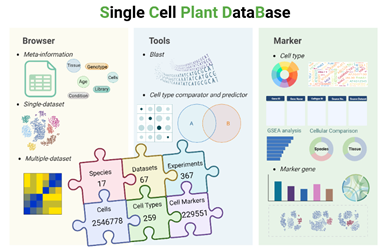 单细胞转录组测序(scRNA-seq)技术的快速发展与广泛应用,实现了单细胞水平基因表达模式的全面剖析,为了解植物细胞的多样性和异质性提供了前所未有的视角,使得植物生物学研究进入了一个全新时代。然而,植物单细胞组学研究领域缺乏一个全面的整合性资源,以实现对已发表植物单细胞数据集的系统重用、探索和比较。