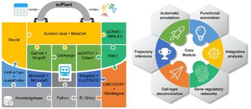 近年来,随着单细胞转录组测序技术在植物学研究中的广泛应用,我们能够更好地了解植物生长发育和对外界刺激的响应机制。然而,目前存在一些挑战:现有的单细胞转录组数据分析工具主要面向特定的任务设计,缺乏端到端的分析工具,并且不同工具之间的整合较为困难。此外,大部分现有的单细胞数据分析工具主要适用于人类和小鼠等哺乳动物,缺乏针对植物的先验知识库,对于没有生物信息学专业知识的实验科研人员来说,使用这些工具较为困难。