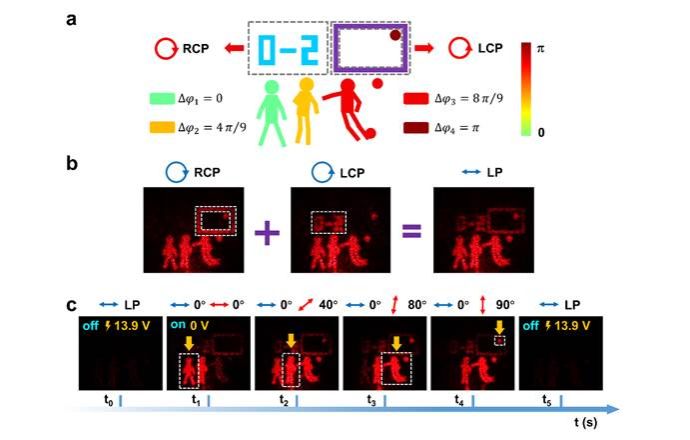 此外,团队还展示了可调谐、高效率、宽带宽的多通道矢量光信息存储与加密,以及主动矢量全息动画效果(图4)。该工作标志着第一个单材料液晶体系矢量光学全息平台的诞生,展示出其在先进显示、信息加密、超分辨成像等领域的重要应用潜能。