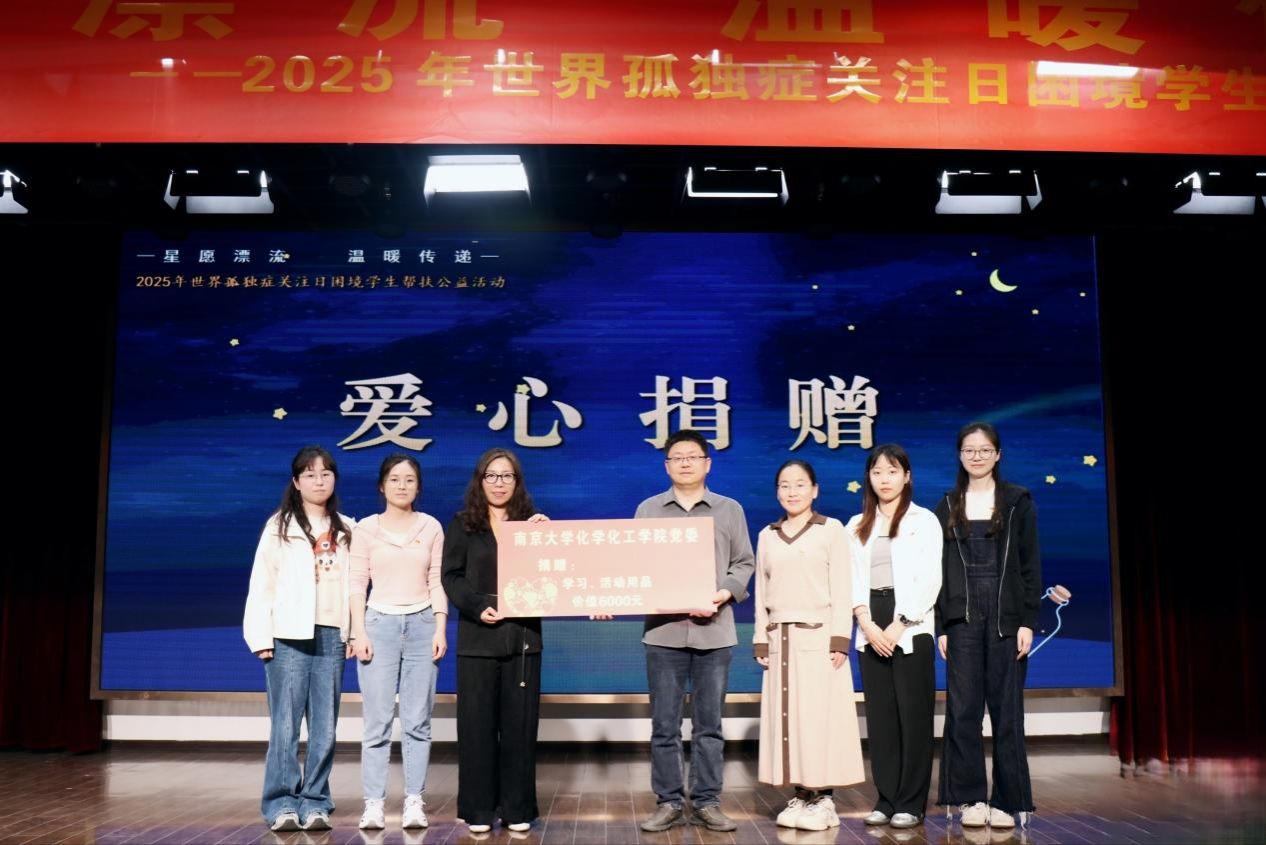 4月22日下午,化学化工学院党委副书记吴可带领学院分析化学教师党支部和博士生党支部党员代表一行前往凯发k8官网市秦淮特殊教育学校,参加由凯发k8官网市孤独症儿童教育研究与指导中心主办的“星愿漂流温暖传递”世界孤独症关注日系列活动之困境学生帮扶公益活动,与孤独症困境学生家庭代表和秦淮特校师生代表齐聚一堂,为困境孤独症学生送去关怀与支持,以实际行动照亮孩子们前行的道路。