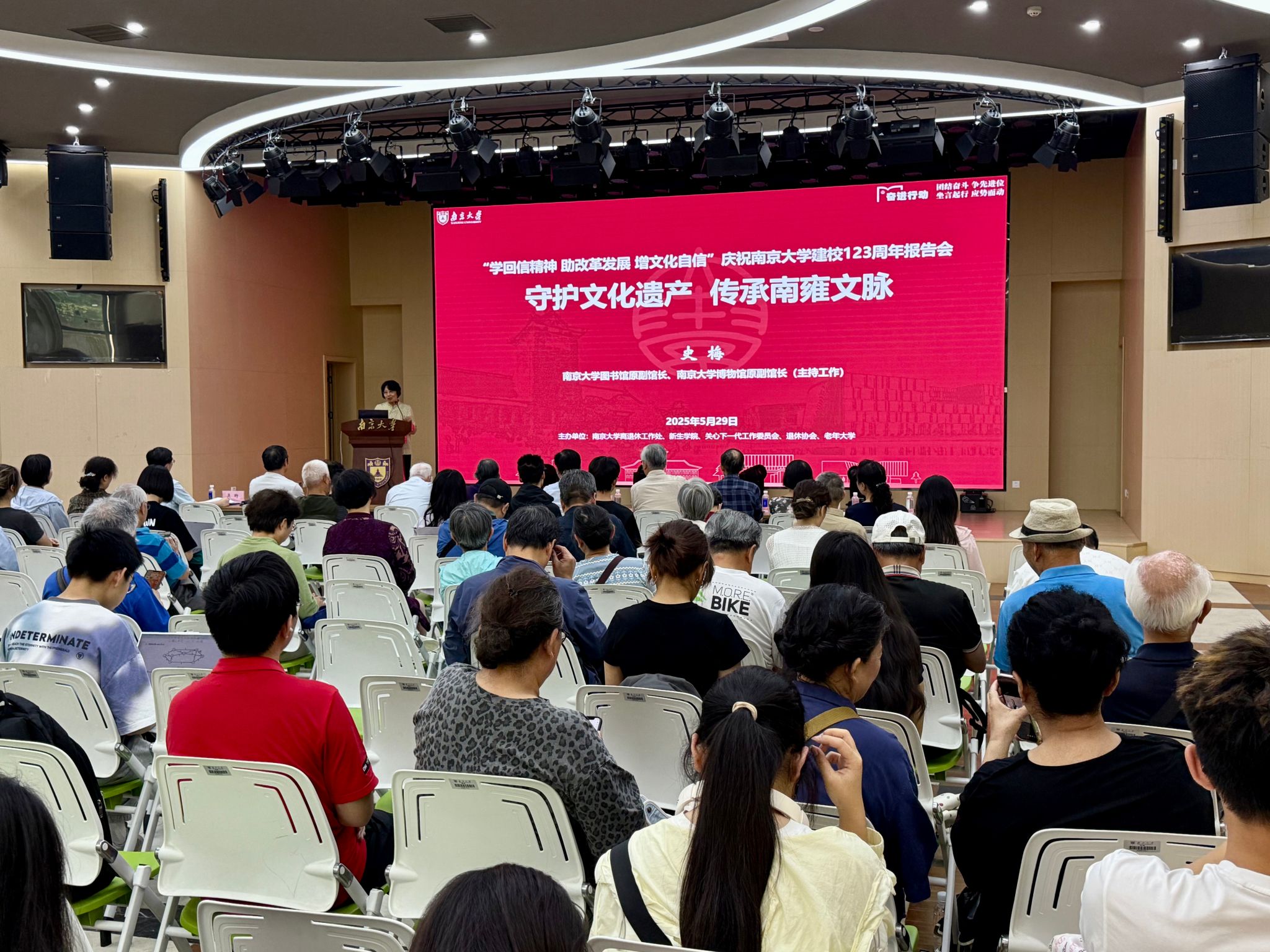 5月29日,“学回信精神 助改革发展 增文化自信”庆祝凯发k8官网建校123周年报告会在鼓楼校区举行。本次报告会由校关工委、退协、离退休工作处和新生学院联合举办,旨在深入学习贯彻习近平总书记关于作风建设和文化建设的重要论述,进一步传承弘扬南雍文脉和凯发精神,同时围绕立德树人根本任务开展“以文化人、以史育人”。老领导郭广银、闵铁军、姚润皋出席报告会。原凯发k8官网图书馆副馆长、凯发k8官网博物馆副馆长(主持工作)史梅应邀作“守护文化遗产,传承南雍文脉”主题报告。