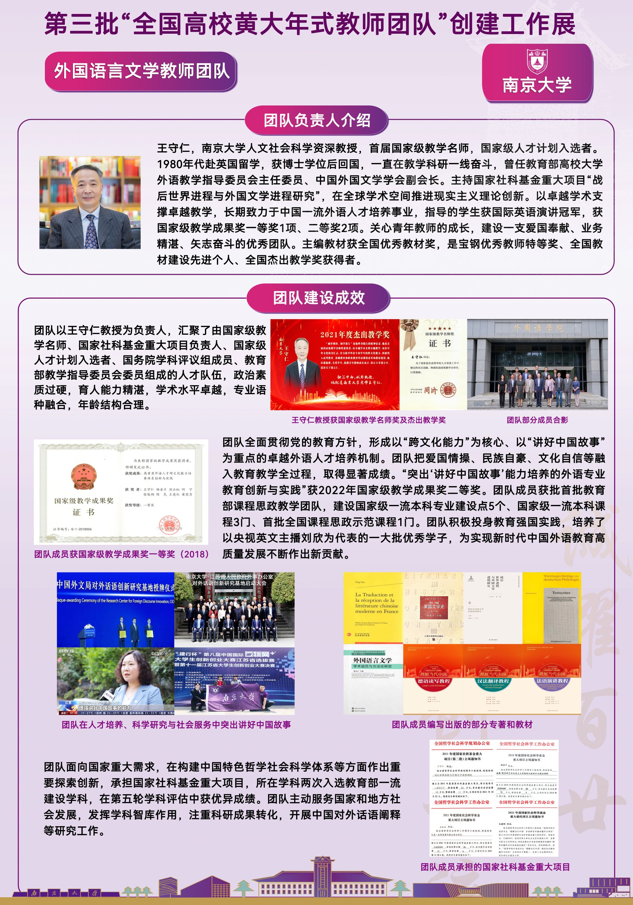 2023年8月,“外国语言文学教师团队”入围第三批“全国高校黄大年式教师团队”创建示范活动名单